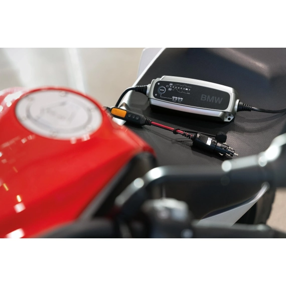 For maksimal levetid og optimal ytelse av motorsykkelbatteriet: Battery Charger Plus er spesielt utviklet for motorsykkelen din og har en automatisk 8-trinns ladeprosess. Den kan lade helt utladede batterier med riktig spenning og strøm. Laderen har et display for å overvåke ladeprosessen og er beskyttet mot gnister, kortslutninger, omvendt polaritet, støv og vann. Den er egnet for 12V blybatterier og litiumbatterier (LiFePo4). For ekstra bekvemmelighet er adapteren for 12V-kontakten inkludert.