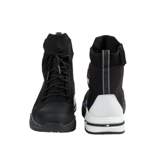De lette og luftige Nitrous-skoene i BMW M Motorsport 3D-strikket design gir utmerket komfort. Den komfortable og lette tofargede sålen med BMW MOTORRAD-logo og «M»-innlegg, samt TPU-forsterkede overflater på spesielt stressutsatte områder, som tå- og ankelbeskyttelse (kun på utsiden), gjør dem ideelle for motorsportkyndige motorsyklister.