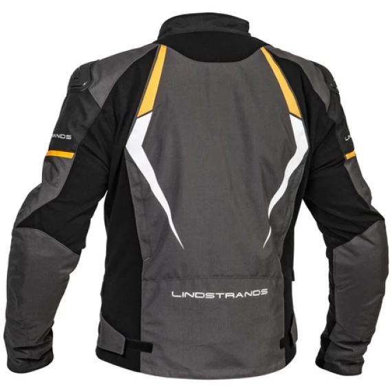 Lindstrands Sandvik jakke Sporty og litt mer figursydd vanntett tekstiljakke i kombinasjon med slitesterkt stretchstoff PE-VEV / PA STRETCH DRYWAY+ membran som drop-liner Stretchpaneler i ryggen og over albuene HI-ART forsterkning på skuldre og albuer CE-sertifisert, klasse AA Justerbar, nivå 2, CE-sertifisert beskyttelse på skuldre og albuer Ventilasjonsåpninger på bryst og rygg Kan suppleres med ryggbeskyttelse, Brystbeskytter klar, Airbag-klar, forberedt med ekspanderende paneler Lang tilkoblingsglidelås for bukse.