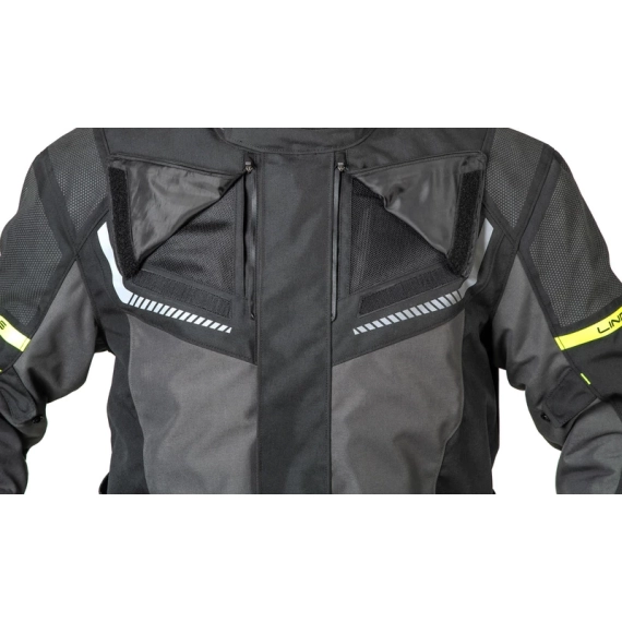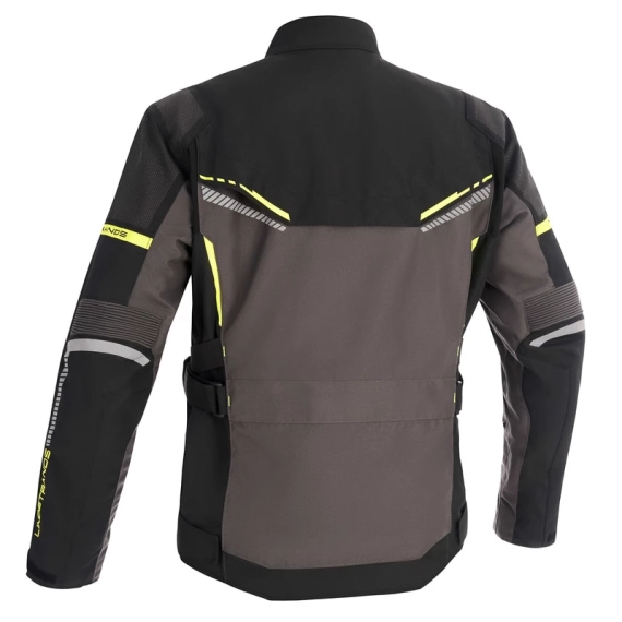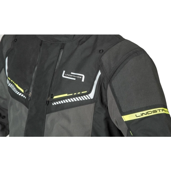 Vanntett og ventilerende jakke i eventyrlook med mange tekniske funksjoner som avtagbart termofôr, Dryway-membran som drop-liner, stretchpaneler på armer og skuldre.