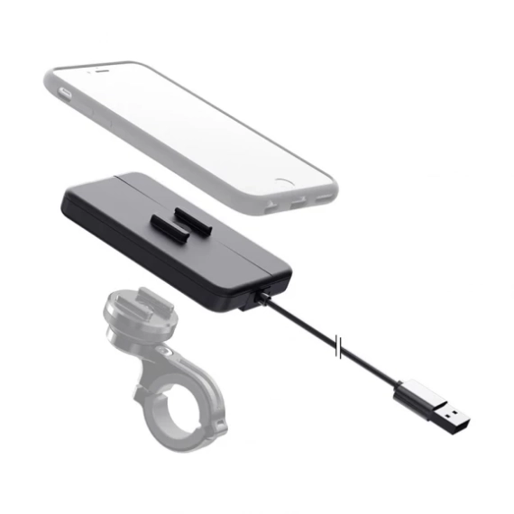 SP-Connect Wireless Charging Module kan monteres på alle SP-Connect festebraketter. Mobiltelefon med SP-Connect deksel festes enkelt på laderen ved å trykke telefonen mot laderen og vri 90 grader med klokken. Laderen leveres med en USB-kabel, plugg den i USB-uttak på motorsykkelen, og laderen vil sørge for lading av mobiltelefon når den er festet til laderen. Fungerer kun på telefoner som er konstruert for induksjonslading.