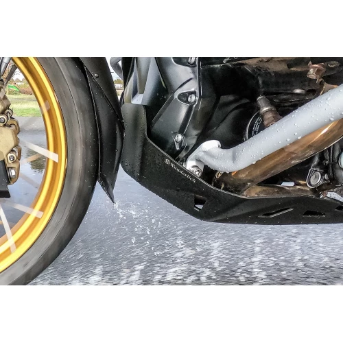 og de ubehagelige konsekvensene. Den beskytter effektivt motorhuset og manifolden mot steinsprut. Og det reduserer smuss på motorhuset og manifolden.