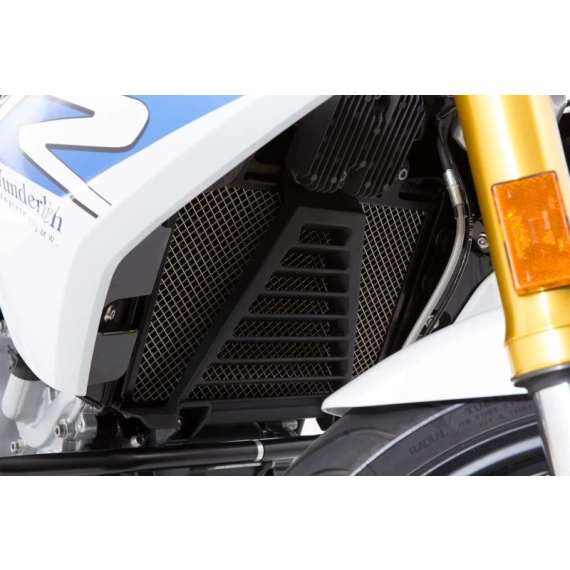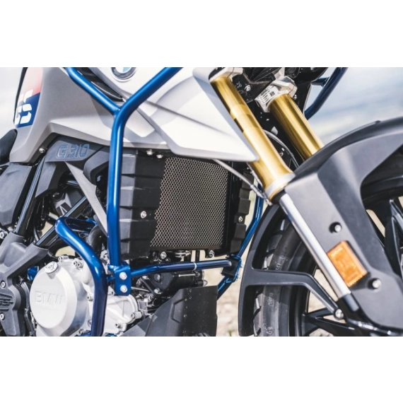 Vannkjøleren til G 310 er utsatt for steinsprut. Fluer og annet rusk samler seg raskt i de delikate ribbeina. Rengjøring er ekstremt arbeidskrevende og krever mye manuelt arbeid. Det finmaskede rustfrie stålgitteret til radiatorbeskyttelsen vår beskytter radiatoren effektivt mot skader og sikrer optimal kjøleluftstrøm og betydelig mindre rengjøringsarbeid på lang sikt.